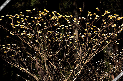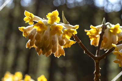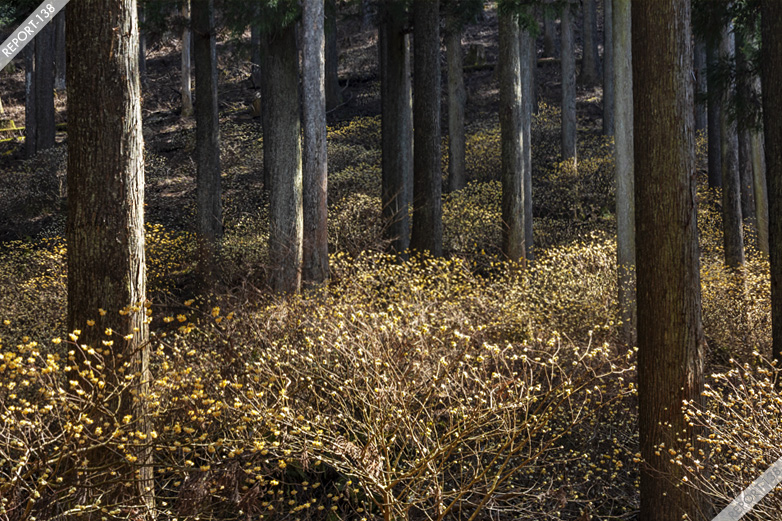 目的はと言えばそりゃミツマタなわけですが、もっと深くの目的はというとこの時期三月あたりの季節感といったところでしょうか。稜線だとそろそろ締まってきてテラってきた雪面とかで表現するわけですが、そればかりだとちょっと物足りない。里に降りれば梅が咲くし、場所によっては足元にカタクリも咲くし、と色々と撮っておきたいわけです。その中で「黄色い花」ミツマタはちょうど良い素材であります。黄色だったら他にもマンサク、サンシュユ、レンギョウなどもありますが、暗い樹林帯に地味に華を添えるミツマタはまた違った趣があっていいですね。もちろんミツマタでも明るいところで咲いている場所もありますので一概に「そのイメージ」というわけではないですが、丹沢らしい暗い樹林、そして横から差し込む光という繊細なカットは特徴があって好きです。